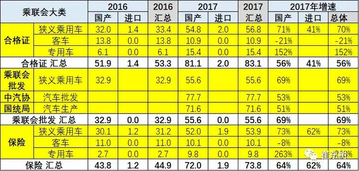 從乘聯(lián)會(huì)廠家批發(fā)數(shù)據(jù)看,2017年狹義乘用車批發(fā)55.6萬臺(tái),同比增長(zhǎng)近70%。從中汽協(xié)數(shù)據(jù)看17年汽車廠家批發(fā)77萬臺(tái),增長(zhǎng)53%。