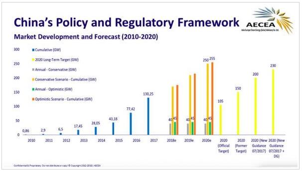 而官方對(duì)于2020年的累計(jì)裝機(jī)目標(biāo)也幾經(jīng)上調(diào),從最初的105GW到目前的230GW;而業(yè)內(nèi)專家預(yù)計(jì)中國(guó)到2020年裝機(jī)可達(dá)250-255GW。