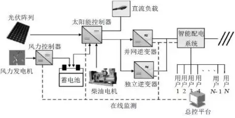 智能微網(wǎng)系統(tǒng)采用多種新型能源供電,是新型電力電子技術(shù)、分布式發(fā)電、可再生能源發(fā)電技術(shù)和儲能技術(shù)的綜合,集成多個(gè)分布式發(fā)電單元和負(fù)荷作為一個(gè)單獨(dú)的電網(wǎng)系統(tǒng),可獨(dú)立向負(fù)載供電或與市電配合向負(fù)載供電。