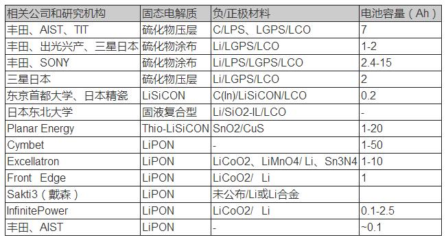 表1 相關(guān)固態(tài)電池樣品宣布的信息