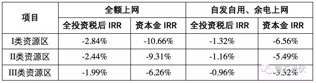 3)自發(fā)自用、余電上網(wǎng)模式補貼僅下調(diào)0.05元/kWh,內(nèi)部收益率降幅較小。其中,全投資內(nèi)部收益率下降了0.9~1.4%,資本金內(nèi)部收益率下降了3.3~6.7%;Ⅰ類資源區(qū)的下降幅度最大。