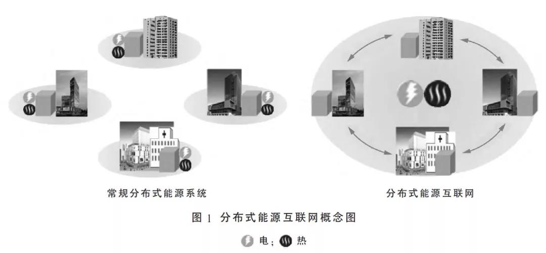 如圖1所示,常規(guī)分布式能源系統(tǒng)以小型化、分散化為立足點(diǎn),著力于為特定用戶提供量身定做的能源服務(wù)。然而,單體用戶用能需求大多呈現(xiàn)明顯的季節(jié)性和時(shí)空性波動(dòng),而且電、熱需求亦不同步。為適應(yīng)需求側(cè)用能行為的動(dòng)態(tài)變化,供給側(cè)運(yùn)行調(diào)度即使從技術(shù)層面能夠?qū)崿F(xiàn),也必將以犧牲系統(tǒng)效率為代價(jià)。分布式能源互聯(lián)網(wǎng)的提出則使分布式能源的應(yīng)用超越了傳統(tǒng)時(shí)空約束,在廣域范圍內(nèi)實(shí)現(xiàn)供需統(tǒng)合。