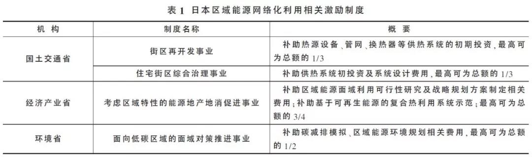表1給出了日本區(qū)域能源網(wǎng)絡(luò)化利用的一些相關(guān)激勵(lì)制度。除國(guó)家層面外,各地方政府也出臺(tái)了相應(yīng)政策措施。