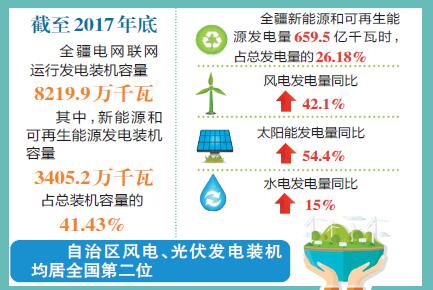 6日,記者從自治區(qū)發(fā)改委獲悉,截至去年底,全疆電網(wǎng)聯(lián)網(wǎng)運(yùn)行發(fā)電裝機(jī)容量8219.9萬千瓦,其中新能源和可再生能源發(fā)電裝機(jī)容量3405.2萬千瓦,占總裝機(jī)容量的41.43%。尤其是自治區(qū)風(fēng)電、光伏發(fā)電裝機(jī)均居全國(guó)第二位。