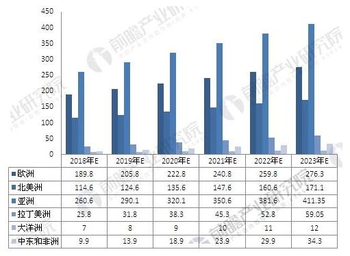 2018-2023年全球分區(qū)域風(fēng)電累計裝機(jī)容量預(yù)測(單位:GW)
