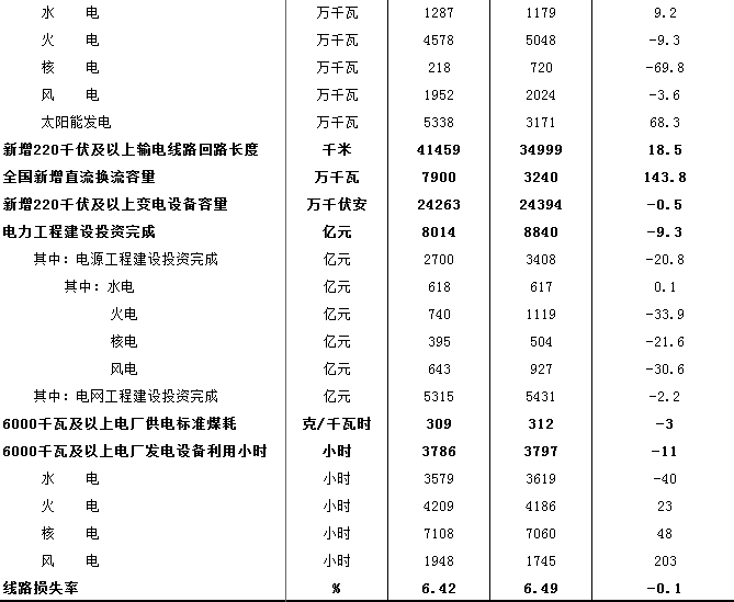 注:1、發(fā)電量、全社會用電量和發(fā)電裝機容量指標數(shù)據(jù)為中電聯(lián)行業(yè)統(tǒng)計的全口徑數(shù)據(jù)。