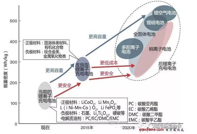 圖2:計(jì)劃2020年實(shí)現(xiàn)300Wh/kg的能量密度