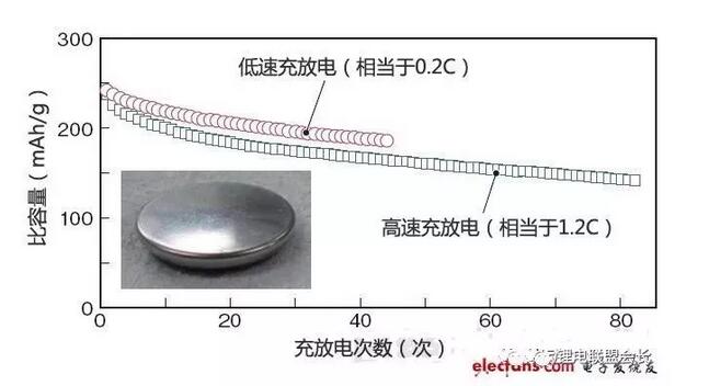 圖5:高速充放電特性出色的鈉離子充電電池利用東京理科大學(xué)試制的紐扣型電池進(jìn)行充放電的結(jié)果顯示,鈉離子充電電池在高速充放電中也具備優(yōu)異的特性。
