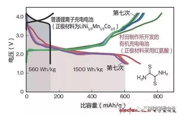 有機(jī)化合物與現(xiàn)行的材料相比可提高正極的比容量。村田制作所將紅氨酸定位為主要候補(bǔ),已確認(rèn)可將容量密度提高到650mAh/g左右。
