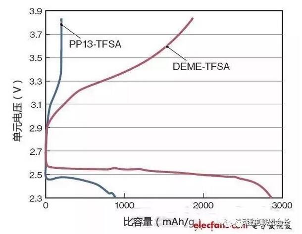 豐田通過在鋰空氣電池的電解液溶劑中采用乙醚類離子液體DEME-TFSA,實(shí)現(xiàn)了與有機(jī)溶劑相當(dāng)?shù)娜萘俊?