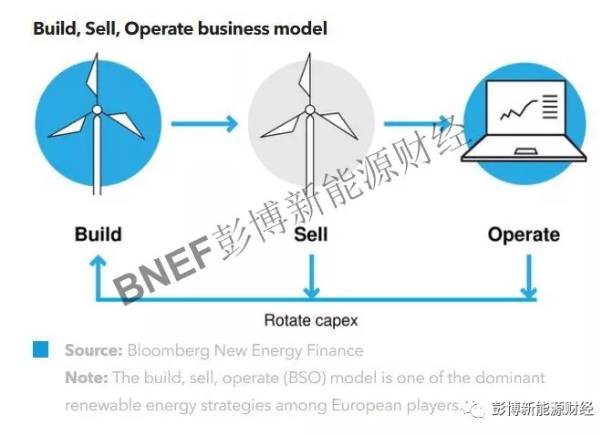 在歐洲的可再生能源BSO(建設(shè)、出售、運(yùn)營)模式下,電廠先建設(shè)可再生能源資產(chǎn),而后向機(jī)構(gòu)投資者出售股份。短期來看,這種模式仍將主導(dǎo)歐洲可再生能源商業(yè)模式。