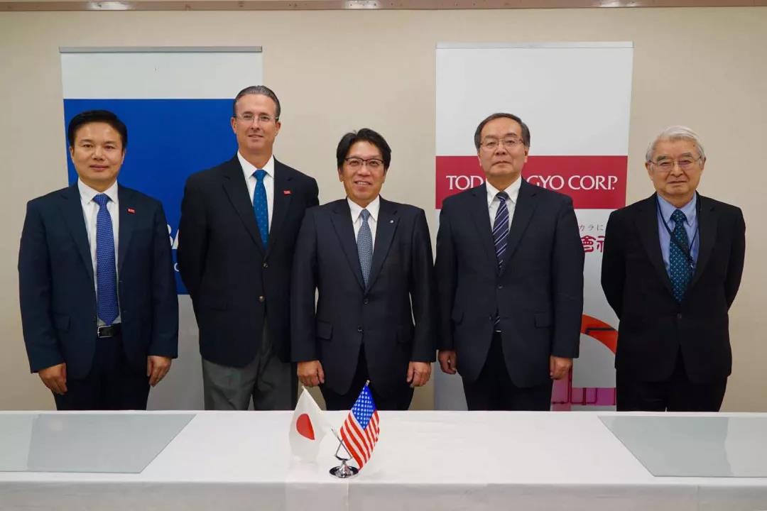從左到右:巴斯夫電池材料全球業(yè)務(wù)部門負責(zé)人、高級副總裁樓劍鋒博士、巴斯夫催化劑全球業(yè)務(wù)部門總裁 Kenneth Lane、戶田工業(yè)株式會社社長寶來茂、戶田美國分社社長相澤義春、戶田工業(yè)株式會社會長久保田正。