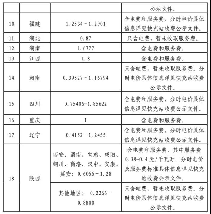 每個(gè)地區(qū)的費(fèi)用不等,詳情如下表: