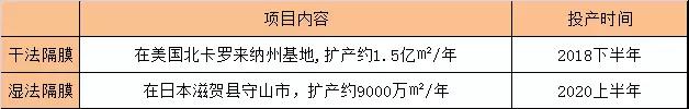 春節(jié)前夕,旭化成發(fā)布公告稱,將在隔膜設備方面投資約75億日元(約合人民幣4.4億元),同時擴大干/濕法隔膜產(chǎn)能。預計2020年項目全部達產(chǎn)后,旭化成的隔膜總產(chǎn)能將達到11億㎡/年,其中,干法隔膜產(chǎn)能4億㎡/年,濕法隔膜產(chǎn)能7億㎡/年。