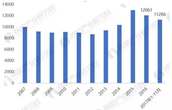 圖表2:2007-2017年全國發(fā)電新增設備容量情況(單位:萬千瓦)