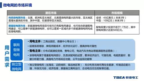 他介紹了微電網(wǎng)在國內(nèi)國外的發(fā)展情況以及面臨的市場環(huán)境。傳統(tǒng)微電網(wǎng)市場主要在北美、歐洲和亞太地區(qū),北美是微電網(wǎng)最大的市場,亞太地區(qū)是增長最快的市場,其中中國、印度領(lǐng)導(dǎo)亞太地區(qū)。未來3年全球規(guī)模達(dá)43億美元,而中國具有100億元