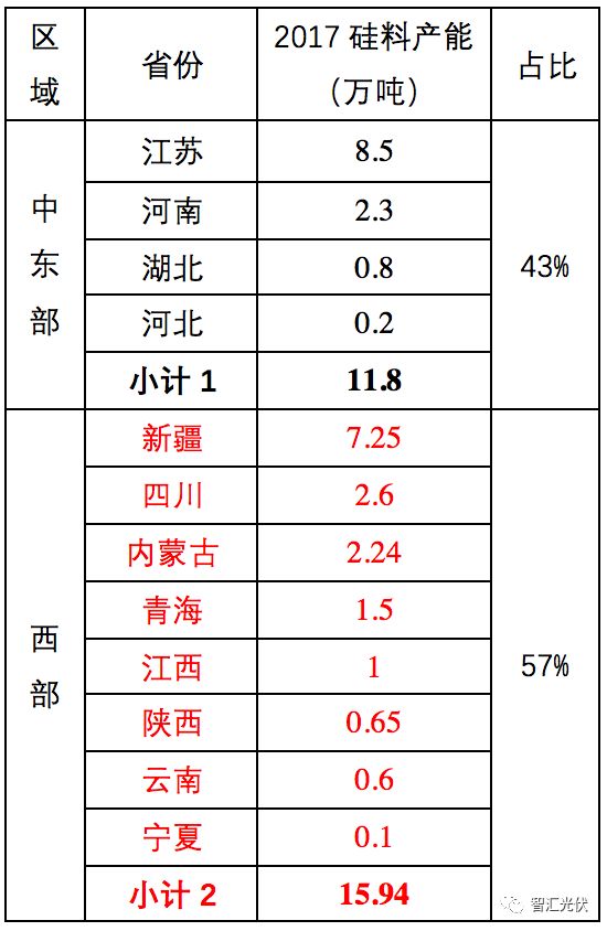 表5:2017年底各省硅料產(chǎn)能分布情況