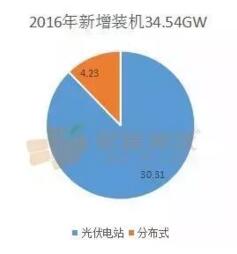 2016年新增裝機34.54GW,分布式4.23GW,占12.25%