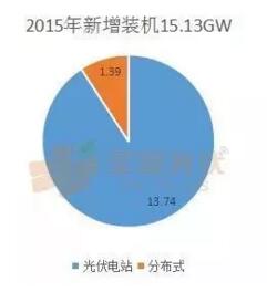 2015年新增裝機15.13GW,分布式1.39GW,占9.19%