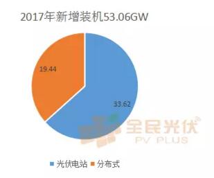 2017年新增裝機53.06GW,分布式19.44GW,占36.64%