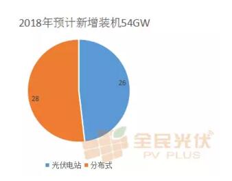 2018年預計新增裝機54GW,分布式28GW,占51.85%