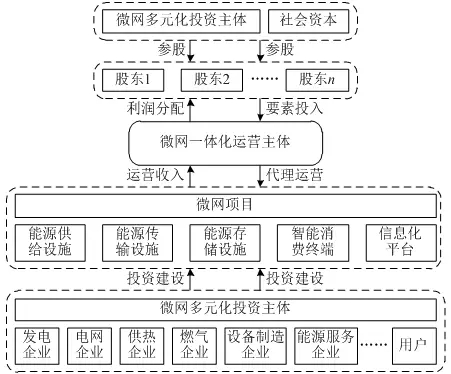 圖3說(shuō)明了微網(wǎng)運(yùn)營(yíng)主體一體化和投資主體多元化的關(guān)系。