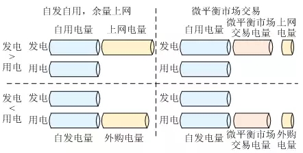 微網(wǎng)優(yōu)勢(shì)之一是促進(jìn)分布式能源的就地消納,目前微網(wǎng)內(nèi)風(fēng)光等分布式能源主要采取“自發(fā)自用,余量上網(wǎng)”的運(yùn)營(yíng)模式,富余或不足部分電量由外部電網(wǎng)接收或提供。