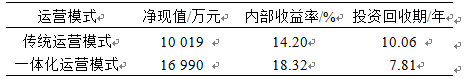 表1傳統(tǒng)運(yùn)營(yíng)模式和一體化運(yùn)營(yíng)模式的成本收益
