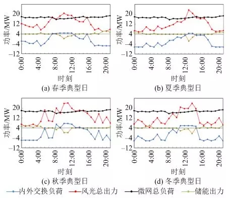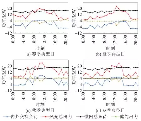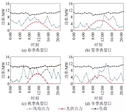 圖8為四季典型日微網(wǎng)風(fēng)光出力和負(fù)荷曲線。