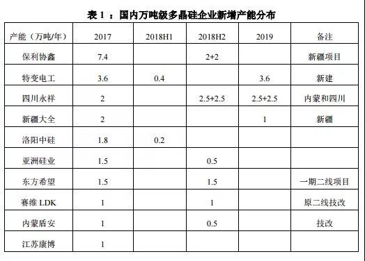 下半年新增產(chǎn)能包括:保利協(xié)鑫4萬噸/年,四川永祥(樂山+包頭)5萬噸/年,內(nèi)蒙盾安、亞洲硅業(yè)、四川瑞能、賽維LDK、云芯硅材等。