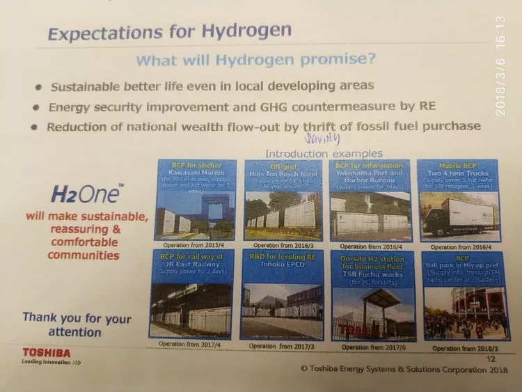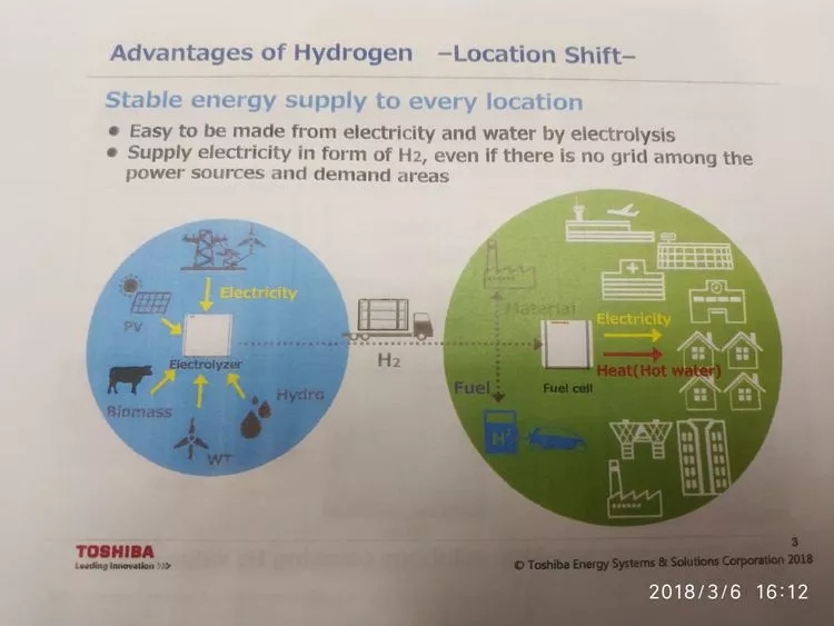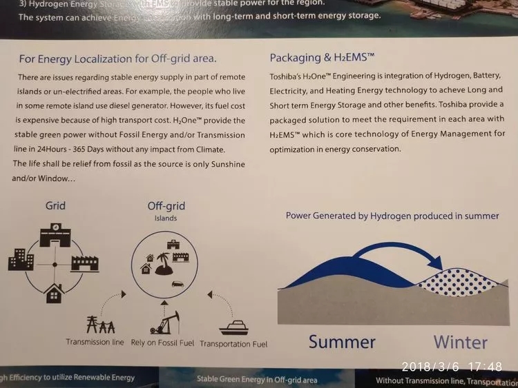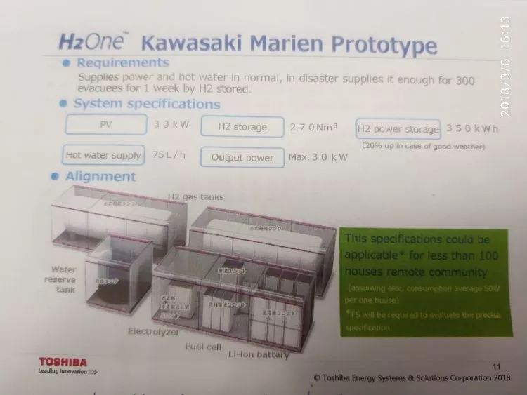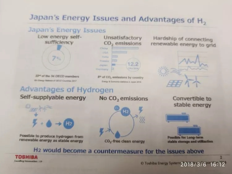 中國儲能網(wǎng)訊:2018年3月5-9日,我受亞洲開發(fā)銀行邀請,到日本東京來參加21世紀(jì)清潔能源系統(tǒng)發(fā)展研討會。6日上午在亞洲開發(fā)銀行研究所開研討后,下午到位于川琦港的東芝公司氫能示范項目考察。