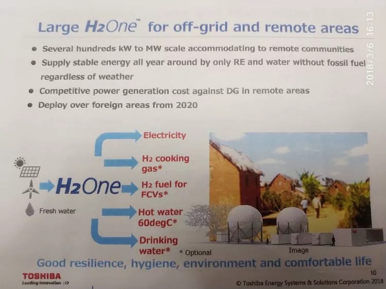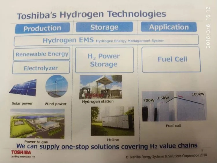 東芝致力于建立一個安全,安全和舒適的社會,即“人類智能社區(qū)”,其中包括通過可再生能源供電的電解水生產(chǎn)氫氣。