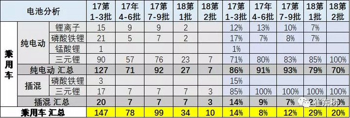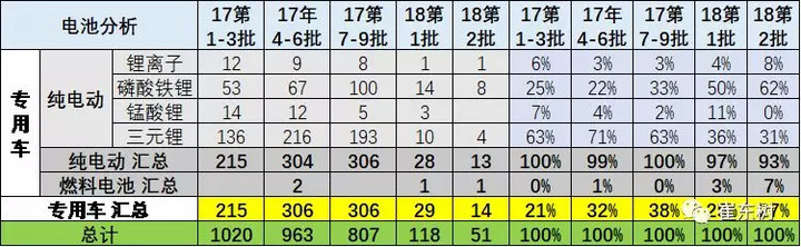 專用車的目錄是磷酸鐵鋰和三元鋰的共同推動,18年第1批的磷酸鐵鋰達到50%雖是偏高,低成本需求依舊相對較多。第二批的磷酸鐵鋰也是很多。