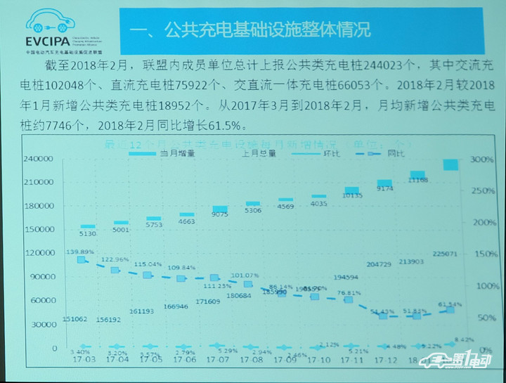 中國儲能網(wǎng)訊:3月9日,中國充電聯(lián)盟官方發(fā)布數(shù)據(jù)顯示,截至2018年2月,聯(lián)盟內(nèi)成員單位總計上報公共類充電樁244023個,聯(lián)盟內(nèi)成員整車企業(yè)采樣車樁相隨信息數(shù)據(jù)369526條,共計充電樁約61萬個。