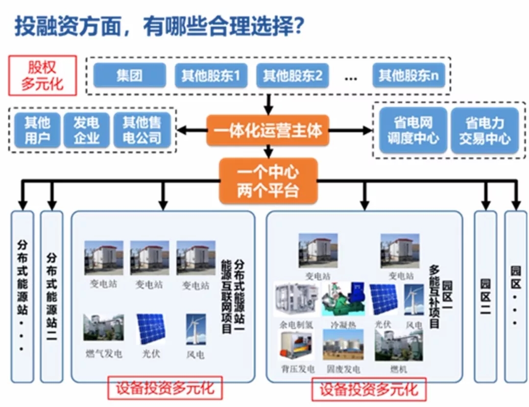 具有配網(wǎng)經(jīng)營(yíng)權(quán)的配售電一體化公司將發(fā)展成綜合能源服務(wù)商,負(fù)責(zé)園區(qū)內(nèi)風(fēng)、光、燃?xì)獾入娫唇ㄔO(shè),負(fù)責(zé)電、氣、熱網(wǎng)絡(luò)建設(shè)、負(fù)責(zé)各種儲(chǔ)能和充放電設(shè)施建設(shè),負(fù)責(zé)多能一體化的供應(yīng)。以信息技術(shù)打造頂層能源調(diào)度系統(tǒng),以多能源市場(chǎng)交易實(shí)現(xiàn)投資回報(bào),以股權(quán)并購(gòu)等形式,打破當(dāng)前供電局、燃?xì)夤?、熱力公司各自為政的局面,形成園區(qū)內(nèi)多種能源的源-網(wǎng)-荷-儲(chǔ)綜合優(yōu)化。