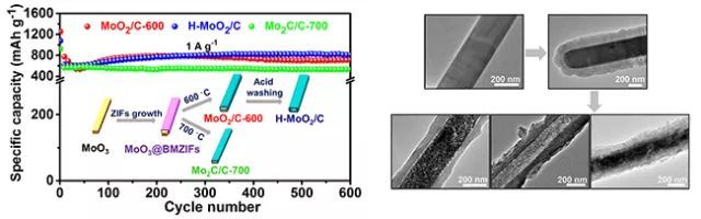 審稿專家對該研究成果給予高度評價(jià),認(rèn)為金屬有機(jī)框架材料輔助合成高儲(chǔ)鋰性能一維鉬基化合物/碳復(fù)合材料的方法對多維度碳材料的可控制備及過渡金屬化合物/碳基復(fù)合材料的合成具有重要意義,在碳材料構(gòu)筑和儲(chǔ)能應(yīng)用方面將會(huì)引起廣泛關(guān)注。