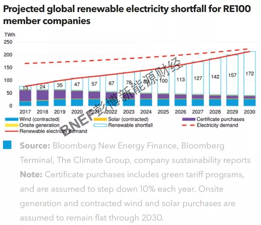 到2030年,RE100公司面臨的可再生能源電力缺口