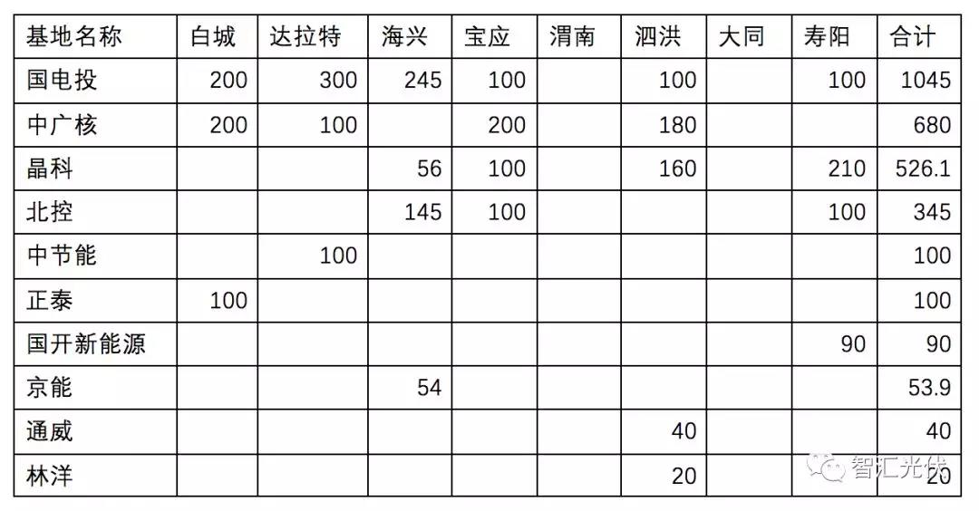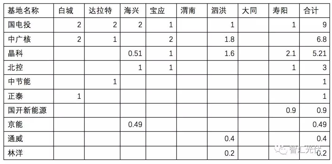 表2:7個基地各企業(yè)中標(biāo)項目容量匯總