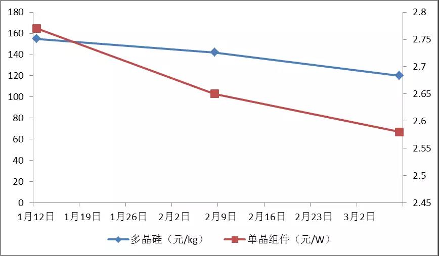 圖 1 2018年1-3月光伏產(chǎn)品價格變化情況