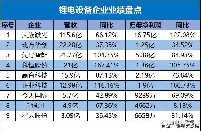 中國儲能網(wǎng)訊:新能源行業(yè)發(fā)展迅猛,對于身處其中的企業(yè),一方面享受到了行業(yè)發(fā)展的紅利,另一方面也面臨日益增大的競爭壓力,各中滋味只有自己才能明白。不過,受益于鋰電行業(yè)需求的高速增長,設備企業(yè)普遍發(fā)展勢頭良好,下面盤點9家鋰電設備上市公司的業(yè)績以及盈利情況,并進行對比分析。