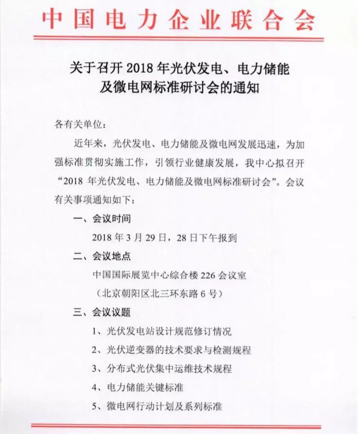 為加強(qiáng)標(biāo)準(zhǔn)貫徹實(shí)施工作,引領(lǐng)光伏、儲(chǔ)能和微電網(wǎng)行業(yè)健康發(fā)展,由中國(guó)電力企業(yè)聯(lián)合會(huì)標(biāo)準(zhǔn)化管理中心主辦,光伏們、中國(guó)儲(chǔ)能網(wǎng)、北京泰格爾展覽有限公司承辦的 “2018年光伏發(fā)電、電力儲(chǔ)能及微電網(wǎng)標(biāo)準(zhǔn)研討會(huì)”將于3月29日在北京召開。點(diǎn)擊文末“閱讀原文”即可報(bào)名參加。