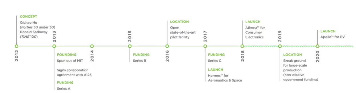 SolidEnergy Systems是美國(guó)麻省理工大學(xué)能源實(shí)驗(yàn)室脫胎出來的一家材料科技公司,成立于2012年,創(chuàng)始人胡啟朝當(dāng)時(shí)師從世界著名的電池專家Donald Sadoway,后者的電池項(xiàng)目曾得到比爾·蓋茨的支持。