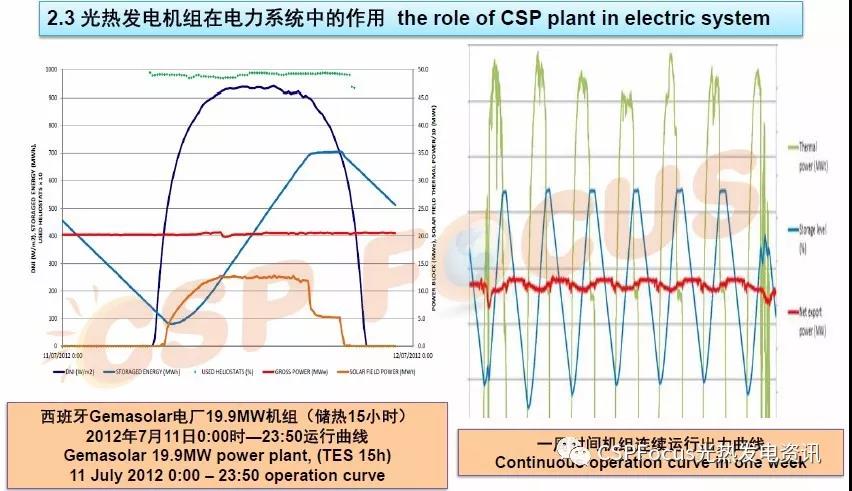 這張圖大家都熟悉,西班牙Gemasolar光熱電站,由于有儲熱系統(tǒng),電力輸出不會受到光照變化強(qiáng)度影響,一周可以連續(xù)穩(wěn)定的保持電力輸出。