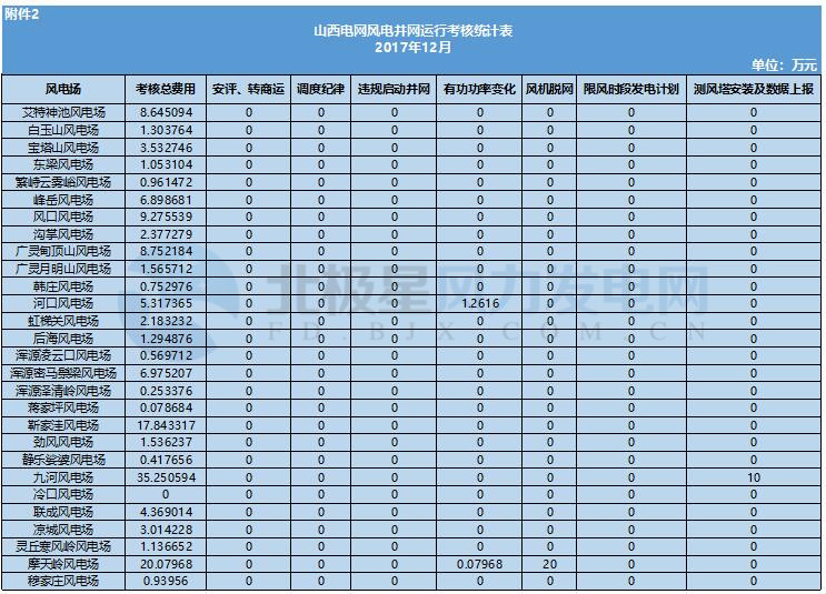 中國儲能網(wǎng)訊:據(jù)悉,山西能監(jiān)辦日前發(fā)布2017年12月份風(fēng)電考核結(jié)果公示。共包括78家風(fēng)電場,總裝機8351.8兆瓦,凈收入全部呈虧損狀態(tài),共計1506.922435萬元;風(fēng)電上網(wǎng)電量2436248.23兆瓦時,上網(wǎng)電費80883.44124萬元。以下為具體數(shù)據(jù):