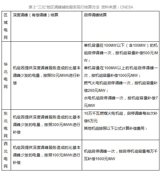 《關(guān)于促進電儲能參與“三北”地區(qū)電力輔助服務(wù)補償(市場)機制試點工作的通知》已經(jīng)允許儲能參與電力輔助服務(wù),但相關(guān)的結(jié)算機制并未確定。在現(xiàn)行主要以火電機組參與的電力輔助服務(wù)市場中,“三北”地區(qū)調(diào)峰的結(jié)算方式如下: