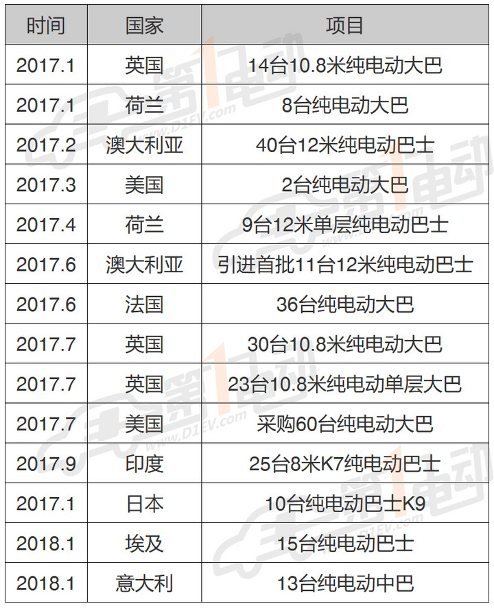 2017年10月,比亞迪斬獲荷蘭最大純電動中巴21臺訂單,進入荷蘭市場等。