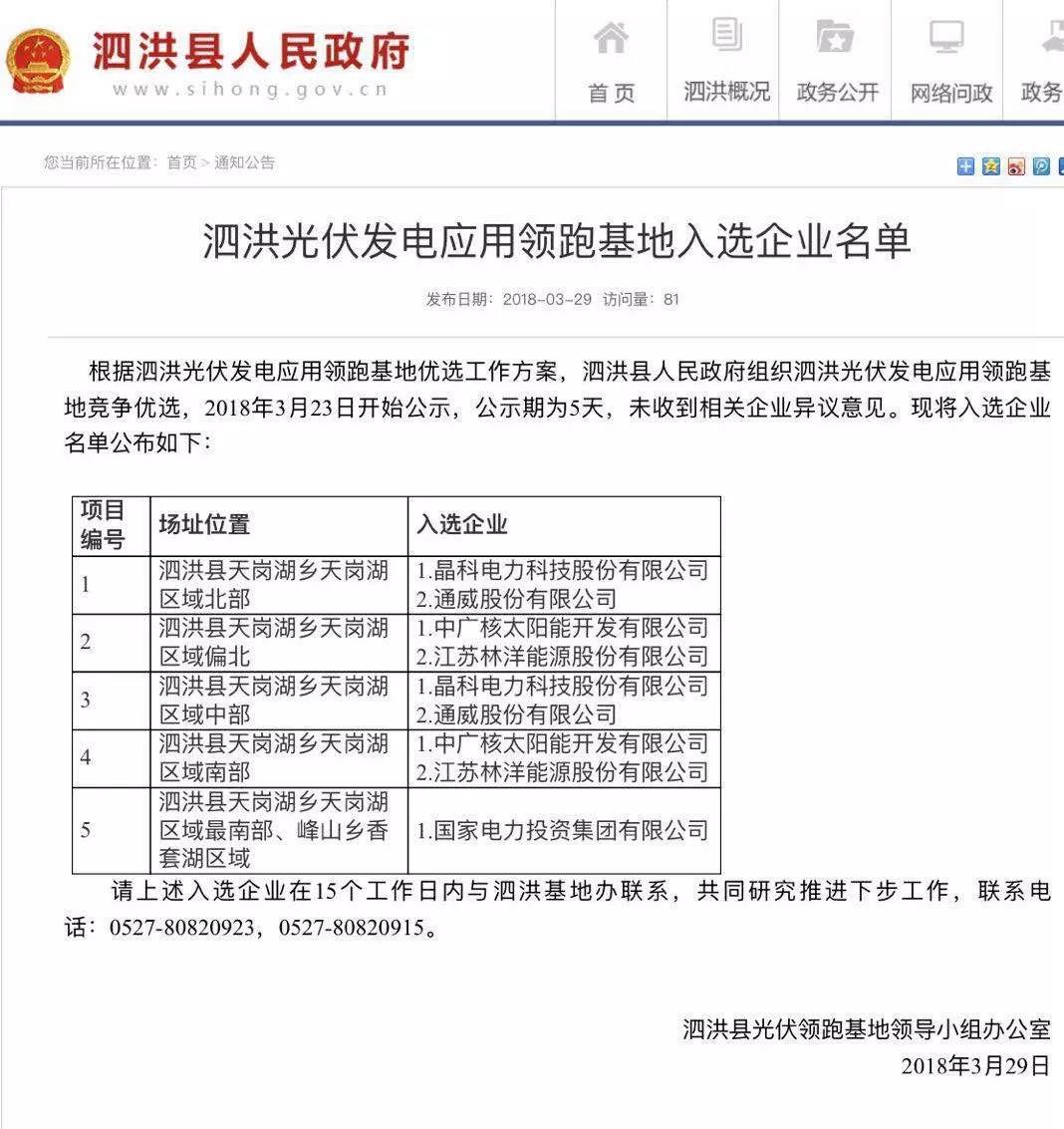 中國(guó)儲(chǔ)能網(wǎng)訊:作為成功中標(biāo)國(guó)家第二批領(lǐng)跑者基地項(xiàng)目——安徽淮北濉溪?jiǎng)虿擅撼料輩^(qū)50MW光伏電站項(xiàng)目并如期并網(wǎng)的林洋能源,憑借卓越的電站設(shè)計(jì)能力、完善的供應(yīng)鏈體系、豐富的施工管理經(jīng)驗(yàn)、N型雙面電池和組件生產(chǎn)能力、高效電站運(yùn)維實(shí)力,再次不負(fù)眾望,攜手中廣核太陽(yáng)能開(kāi)發(fā)有限公司分別以0.52元/kWh和0.53元/kWh的上網(wǎng)電價(jià)成功中標(biāo)國(guó)家第三批領(lǐng)跑者基地項(xiàng)目——泗洪縣天崗湖鄉(xiāng)天崗湖區(qū)域偏北及南部2個(gè)領(lǐng)跑者基地,中標(biāo)率達(dá)40%,項(xiàng)目規(guī)??傆?jì)達(dá)200MW!