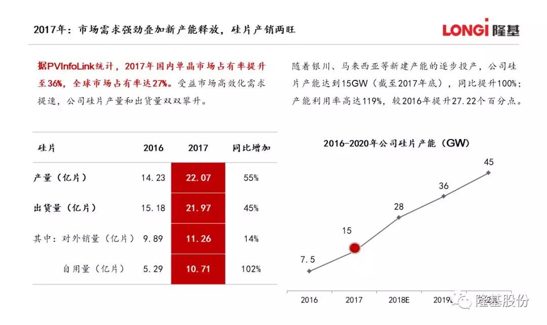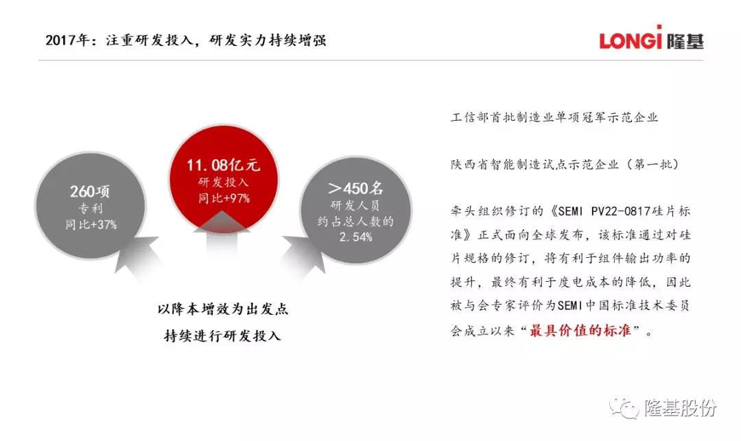 中國儲能網(wǎng)訊:近日,隆基股份發(fā)布2017年度報(bào)告,收入規(guī)模持續(xù)穩(wěn)步增長,經(jīng)營效益再創(chuàng)新高。報(bào)告顯示,隆基股份2017年?duì)I業(yè)收入比上年115.31億元增長41.90%,達(dá)163.62億元。歸屬上市公司股東的凈利潤達(dá)35.65億元,比上年增長130.45%。