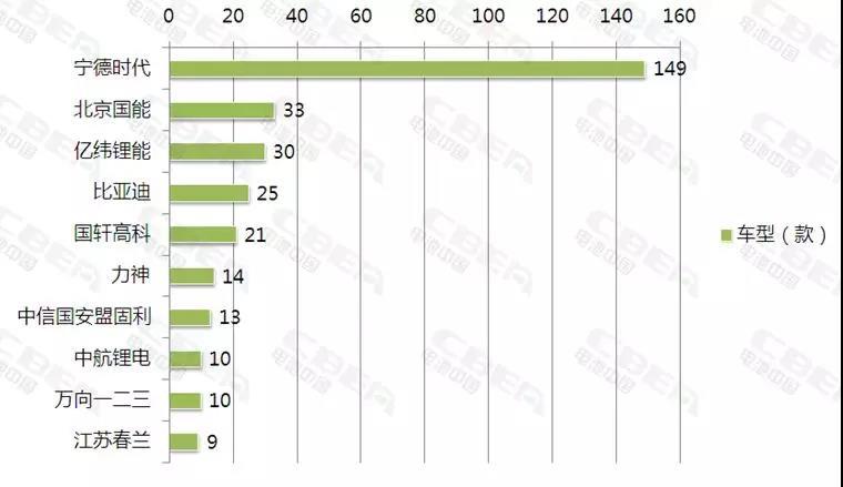 裝機(jī)量代表動(dòng)力電池企業(yè)在當(dāng)前市場(chǎng)的占有量,若要看未來動(dòng)力電池企業(yè)發(fā)展如何?就要看動(dòng)力電池企業(yè)配套車型獲批情況,未來哪家動(dòng)力電池企業(yè)配套車型越多,未來將有機(jī)會(huì)獲得更多的市場(chǎng)占有量。下面來看2018年新能源汽車推薦目錄1-3批車型配套電池企業(yè)前10名。寧德時(shí)代以149款配套車型遙遙領(lǐng)先;位居第2位的是國能,配套車型量為33款;億緯鋰能緊隨其后,配套車型量為30款;從第4名開始,配套車型均低于30款并逐漸下滑,趨勢(shì)平緩。