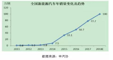 看完這個,我們再來看另外一條路徑:在產(chǎn)業(yè)鏈上尋找新爆點(diǎn)。根據(jù)中汽協(xié)數(shù)據(jù)統(tǒng)計(jì),2017年我國新能源汽車實(shí)現(xiàn)生產(chǎn)79.4萬輛,同比增長53.8%;實(shí)現(xiàn)銷售77.7萬輛,同比增長53.3%。